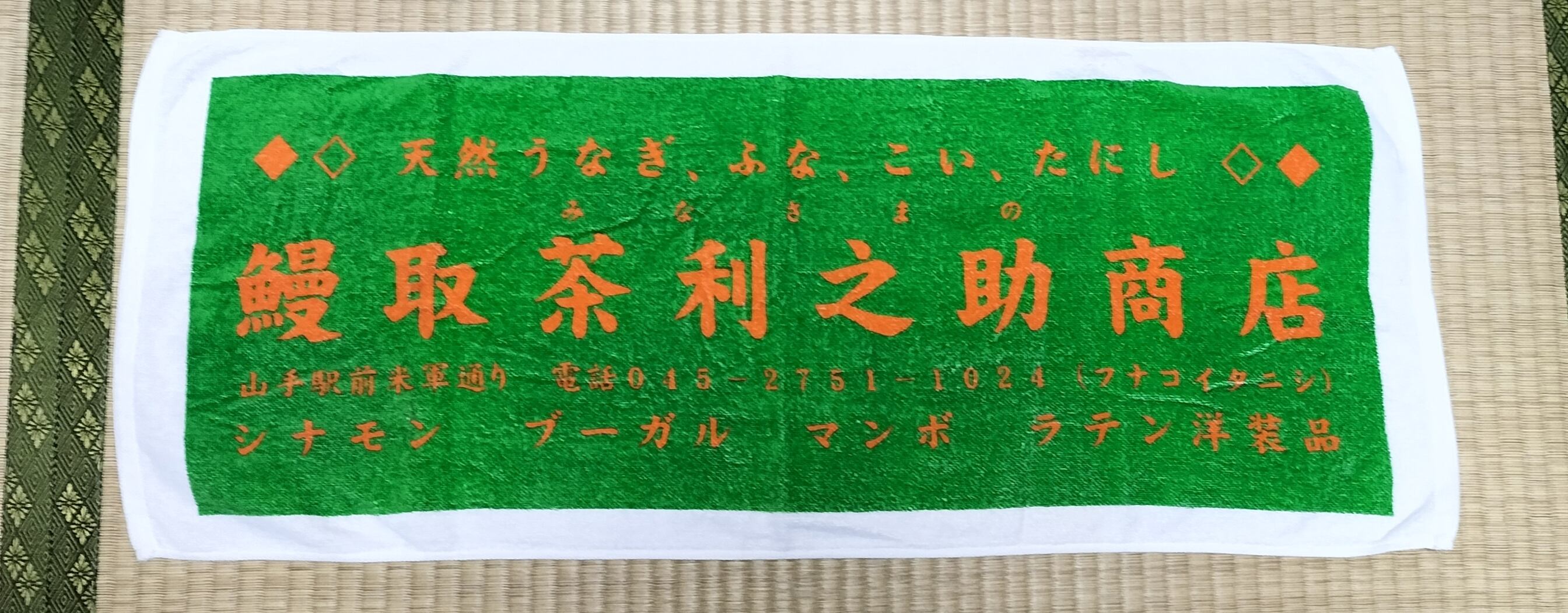 天然うなぎ、ふな、こい、たにし川魚商店タオル