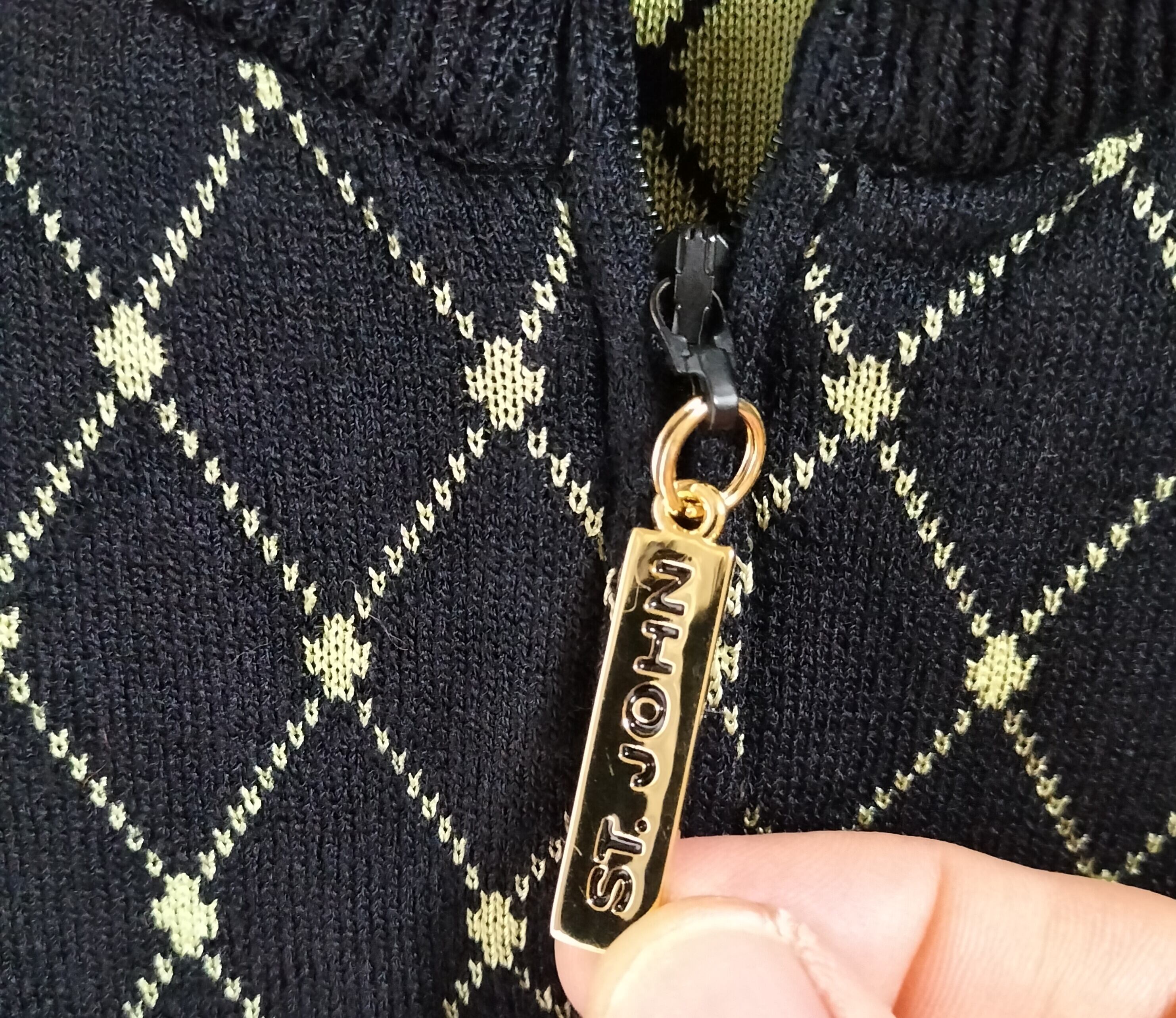 ST John Sport By Marie Gray ブラック グリーン ダイヤモンド パターン フルジップ ジャケット サイズ M
