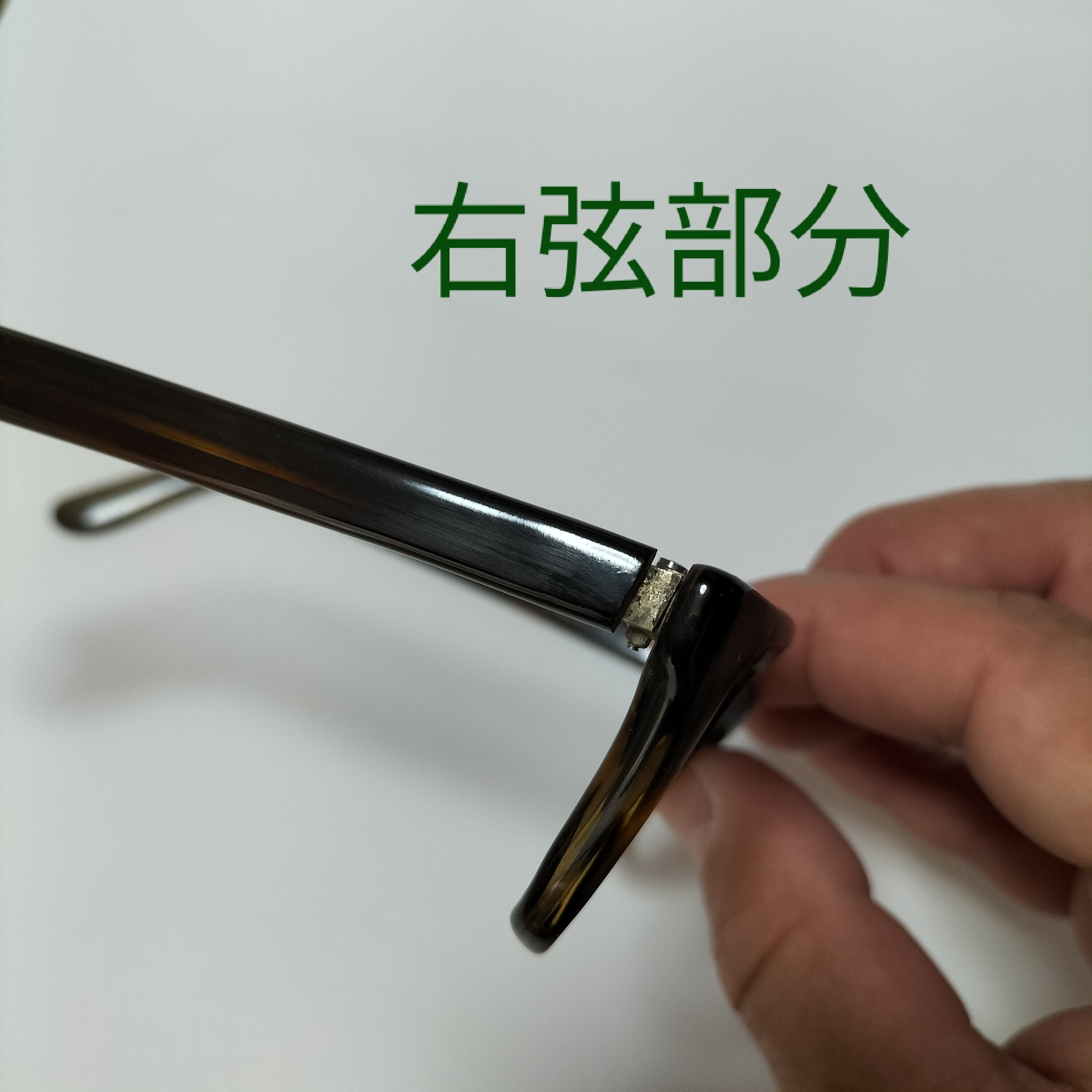 左側の弦部、耳にかかる部分に2ヶ所筋傷があります。