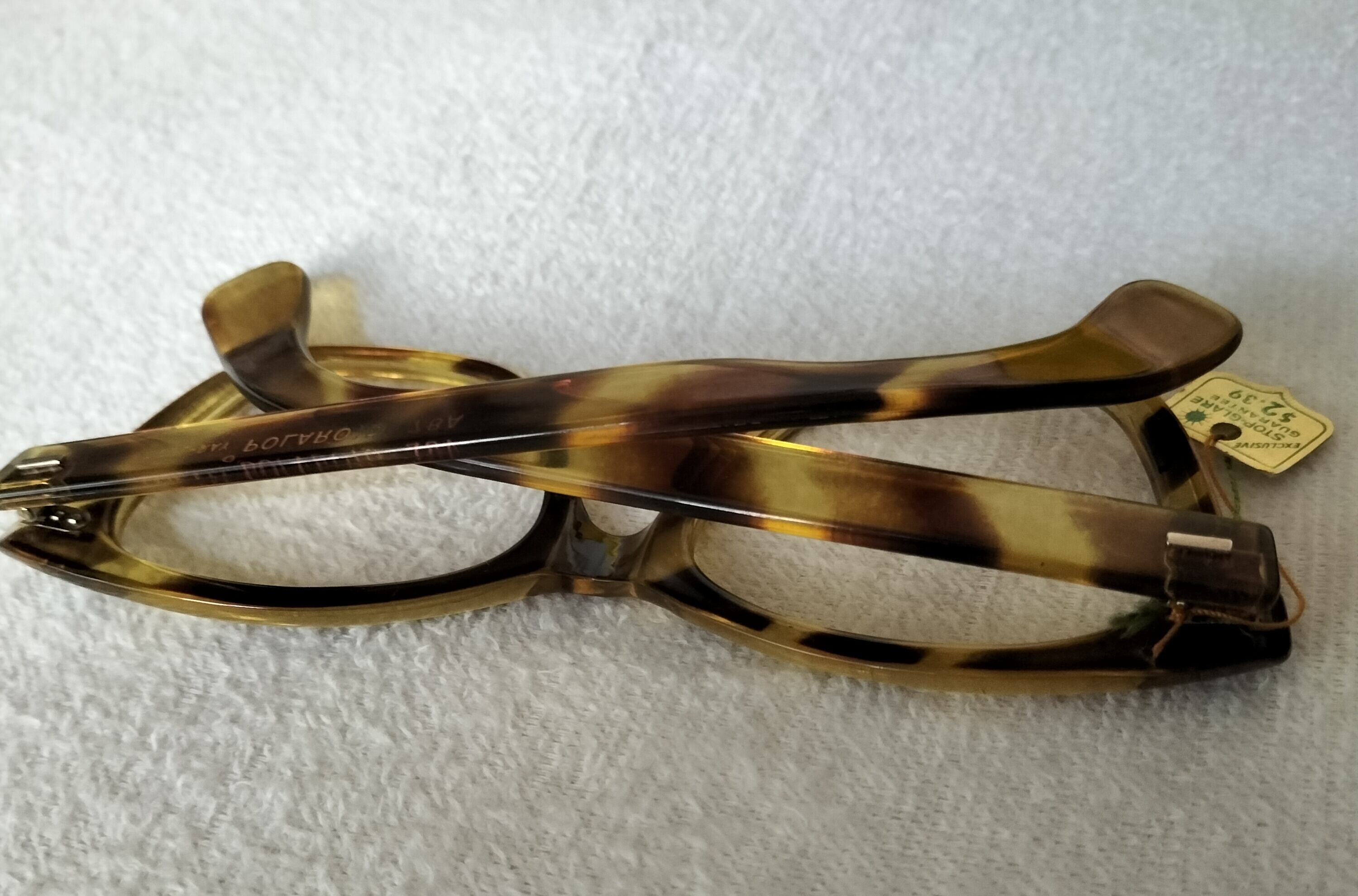 アメリカンオプティカル社からのシェアカンパニーポラロイドクールレイ。サマーグラスの傑作を産み出したこの子会社のまさに最高級な1品です。琥珀系のクリアフレームにストライプ。薄いレンズをお入れになって夏のお供に如何でしょうか。男女選ばないUNISEXタイプ。