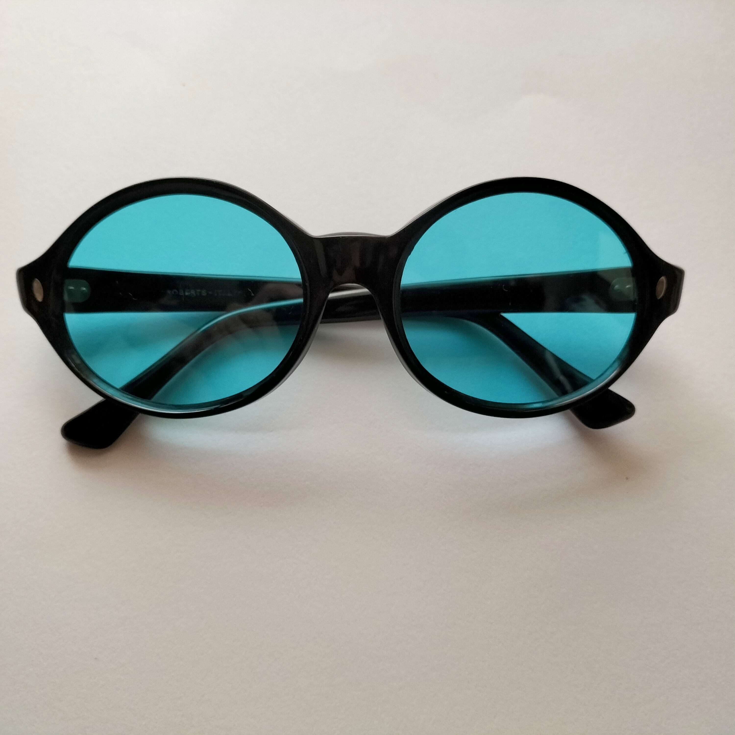 ビンテージ特有のやわらかい光沢を放つブラックフレームとブルーレンズの相性は素晴らしく、イタリアンクラッシックの雰囲気が漂う1品だと思います。
