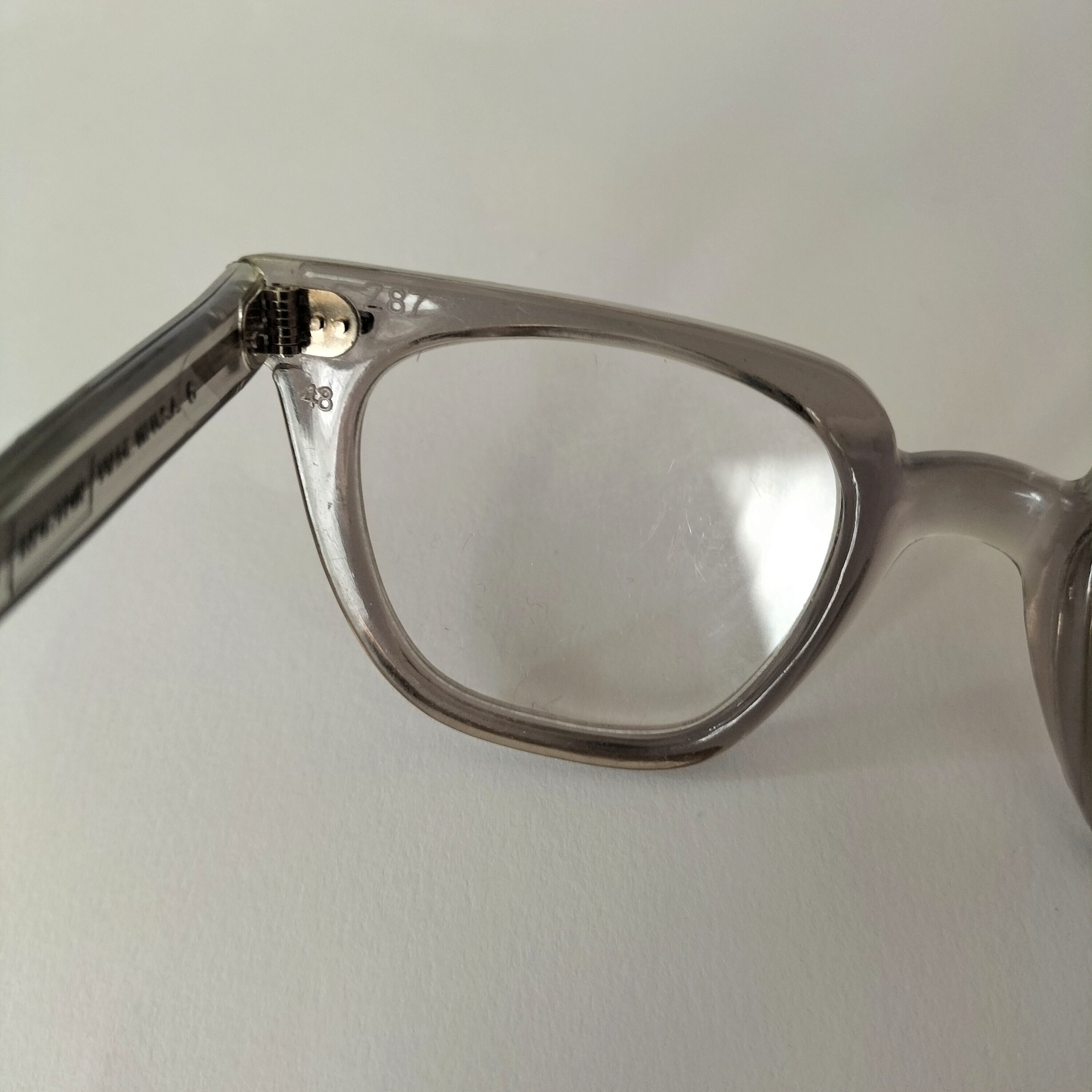 フレームカラーはクリアグレイ、当時のオリジナルレンズが装着されています。